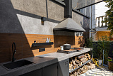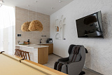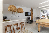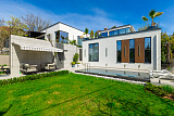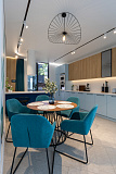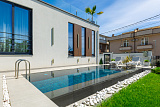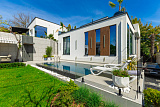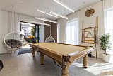 Этот дом представляет собой комплексное предложение, состоящее из двух зданий: основного дома площадью 220 м2 с удобной планировкой и четырьмя спальнями и гостевого дома на 80 м2 с сауной, бильярдной и SPA-зоной. Благодаря дополнительным постройкам такой формат организации пространства позволяет комфортно разместиться большой семье и обеспечить отдельный отдых для двух семей.