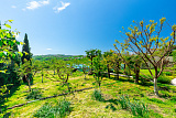 На участке, площадь которого составляет 16 соток, располагается основной дом, который состоит из трех этажей и имеет площадь 376 квадратных метров. На террасах, с прямым видом на море и горы, размещено еще 80 квадратных метров жилой площади. Также на участке находится двухэтажный гостевой дом с баней, общей площадью 100 квадратных метров, дом для прислуги с гаражом, открытый бассейн и благоустроенные зоны для отдыха.