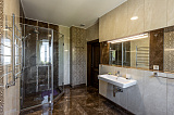 Дом очень уютно спланирован. Внутри 3 спальни, 4 санузла, гостиная, кухня-столовая, 3 гардеробные комнаты, кабинет, подогреваемый бассейн, сауна, прачечная, хоз.помещения