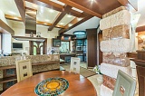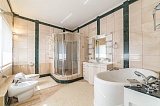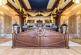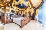 Представляем Вашему вниманию роскошную виллу на берегу Черного моря. Трехэтажный дом, площадью 750 м2, выполнен в византийском стиле: в отделке дома использованы натуральный камень, дерево (каштан), барельефы, венецианское стекло, которые характеризуют роскошь, пышность и богатство. При декорировании спален большое внимание уделено натуральным тканям, из которых сшиты занавеси, покрывала, а также высокие балдахины над кроватями. Помещение закрытого бассейна с джакузи также выдержано в стилистике дома – статуи и военные трофеи в характерной золотой гамме интерьера. Византийский стиль в интерьере – это всегда дорого и изысканно.