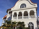 - На приусадебном участке выполнены работы по благоустройству и ландшафтному озеленению. Финиковые и банановые пальмы, аккуратно подстриженный газон – все это подчеркивает красоту самого дома;