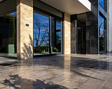 Фундамент: свайное поле из 17 буронабивных свай. Облицовка фасадов здания: из натурального камня “Травертин”, состыкованный с вентилируемым фасадом на под системе из премиального керамогранита. Окна Алюминиевые: Alumil (Премиальная серия, Греция), автоматика Zigenia (Германия). Практически из всех окон дома открывается панорамный вид на Черноморское побережье, Олимпийский парк и образовательный центр Сириус.