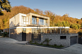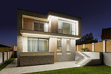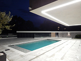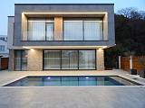 Архитектурное решение виллы исполнено в лучших традициях стиля хай-тек, который характеризуется строгой геометрией фасадных линий и внушительной площадью остекления. Дополнено все это до мелочей продуманным ландшафтным дизайном приусадебной территории.