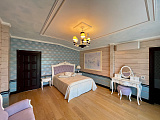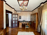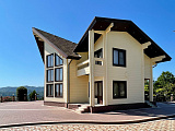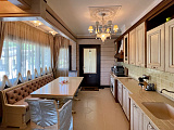 Общая площадь строений превышает 600 м2, основной дом выполнен в два жилых этажа и цокольное помещение, в котором расположена просторная бильярдная комната, сауна, комната отдыха. На первом этаже находится просторная гостиная с двойным светом, кухня-столовая и кабинет. На втором этаже уютно вписались четыре спальные комнаты со своими санузлами и террасами.