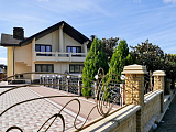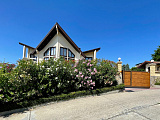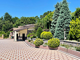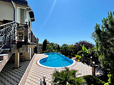 Вилла на просторном участке в 30 соток расположена в элитном коттеджном поселке в 15 минутах езды от центра Сочи. Отличная асфальтированная дорога до поселка, охрана с КПП. На участке просторная парковка, домик для охраны, гараж на 3 авто, гостевой дом (либо для персонала), приятный ландшафтный дизайн, включающий зону плодовых и декоративных деревьев. Большой переливной бассейн с подогревом.