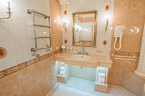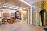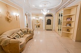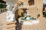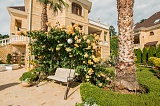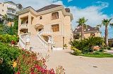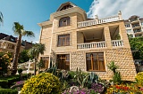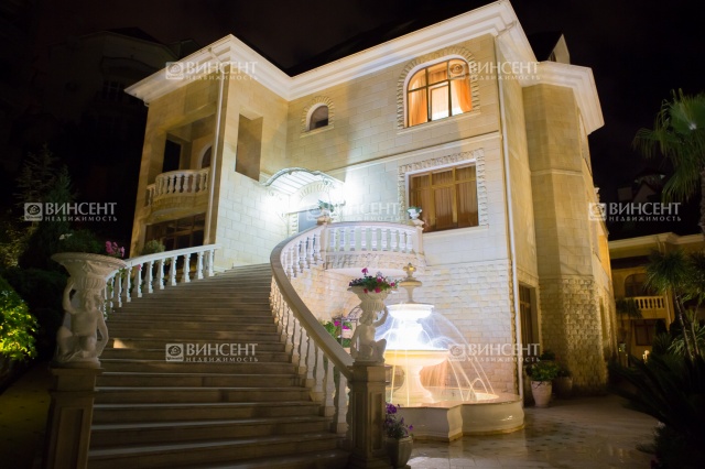 Уже при первом взгляде на этот особняк становится ясно, что он не даром принадлежит к категории жилья класса «DeLuxe». Великолепная архитектура, необычайной красоты ландшафтный дизайн, облицовка фасадов мрамором и природным камнем – все это придает особняку по-настоящему стильный и необычайно красивый вид, подчеркивающий его принадлежность к элитной недвижимости Сочи. Во дворе дома высажены редкие субтропические растения – пальмы, агава, алоэ и т.д. Входную группу украшают фонтан. Оборудованы зоны для отдыха в виде уютной беседки с мангалом и качель, красиво обвитых чайной розой. Также во дворе находится бассейн, зона для принятия солнечных ванн и уютный гостевой домик, который также можно использовать как дом для обслуживающего персонала – садовников, горничных, охраны, поваров и т.д. Не менее важным достоинством является наличие на территории этой виллы гостевого дома, утепленного гаража с автоматическими рольставнями, а также шашлычной с мангалом, укомплектованной дорогой мебелью ручной работы!