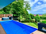 Стильная, современная, утопающая в зелени вилла в стиле хай-тэк с шикарными видовыми характеристиками. Прекрасное местоположение в сочетании с приватностью и легкой транспортной доступностью. Площадь участка 5 соток, спа зона с джакузи, бассейн с цветной подсветкой 7/3м, 1,6 м глубиной. Дом монолитный ( сейсмоустойчивость 8-9 баллов), фасад- вентилируемые японские панели Kmew, панорамные алюминиевые окна с термостеклопакетом. Первый уровень: просторная гостиная с кухней-столовой оригинального дизайна. На втором уровне: 3 спальни с панорамными окнами с выходом на большую террасу. Санузлы имеются на каждом этаже. Коммуникации центральные.