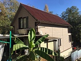 Продается 2-х этажный дом построенный из профильного бруса на ровном месте. На первом этаже дома расположены гостиная, кухня, санузел и летняя терраса. На втором - две спальни с балконами и ванная комната. На задней части дома оборудована летняя веранда с кухней, зоной отдыха и эксплуатируемой кровлей. Веранду можно утеплить на зиму и использовать как полноценную жилую комнату. На придомовой территории выделено парковочное место для двух автомобилей. В шаговой доступности автобусная остановка по 13 и 14 маршрутам, продуктовый магазин Пятерочка, столовая и аптека. Газ проведен вдоль границы участка, подключена трехфазная система энергоснабжения. Земля находится собственности.