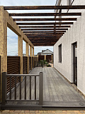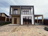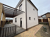 Площадь дома составляет 128 м2. Сразу хотим обратить ваше внимание на тот факт, что отсутствие финальное отделки внутри открывает перед покупателями огромный простор для творчества и позволяет реализовать самые смелые дизайнерские задумки. На первом уровне находится терраса, на втором – открытый балкон с перголами. Все коммуникационные системы подключены. В том числе – газ.
