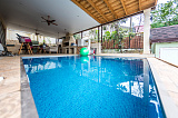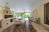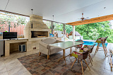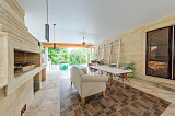 Невозможно обойти вниманием и факт стильного архитектурного решения, которое дополнено детально продуманным ландшафтным дизайном участка. В целом, на территории созданы все условия для комфортного отдыха – большая крытая беседка с мангалом, подогреваемый бассейн в балийском стиле с видом на лес. Также здесь располагается достаточно просторный автомобильный паркинг, где спокойно можно поставить до 4 автомобилей.