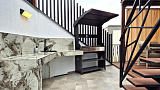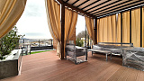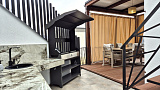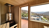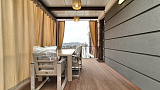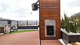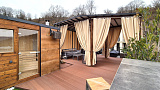 Особое внимание заслуживает эксплуатируемая кровля, трансформирующаяся в зону отдыха с уютными диванами и мангалом, а также панорамная баня на дровах, где можно насладиться закатом, расслабиться и забыть о повседневных заботах.