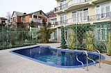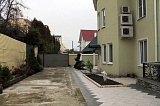 Площадь участка равна 6 соткам, на которых расположился домик для прислуги, паркинг, рассчитанный на 4 автомобиля, уютна беседка с мангалом, а также бассейн и мини-сад с плодоносящими деревьями. Пешеходные дорожки вымощены камнем.