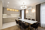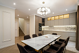 Когда попадаешь сюда впервые, первое, что бросается в глаза – стильное архитектурное решение, дополненное продуманным дизайном придомовой территории. Дом на самом деле выделяется на фоне остальных предложений и идеальным образом увязан с естественным ландшафтом. Кроме того, к перечню его важных особенностей следует отнести следующие аспекты: Наличие собственного бассейна с подогревом на территории, полная готовность для жизни – новый ремонт, полностью подключенные коммуникации – свет, вода, газ, канализация, Летняя кухня с мангальной зоной во дворе, Парковочное пространство для 2-3 автомобилей. Также перед домом есть место для обустройства дополнительных зон отдыха. Здесь можно установить детскую игровую площадку или тренажеры на свежем воздухе. Факт полной готовности дома для жизни обусловлен не только выполненным ремонтом, но и наличием всей мебели, техники, климатического оборудования. Интерьер оформлен в современном классическом стиле. Подробно о расположении: Преимущество, которое заслуживает отдельного внимания – выгодное расположение дома. Район отличается редким сочетанием тишины, благоприятной экологической обстановки и прекрасной транспортной доступности. Близость новой трассы позволяет быстро добраться до курортов Красной Поляны. Дорога до Олимпийского парка, аэропорта и вокзала в Адлере занимает около 10 минут.