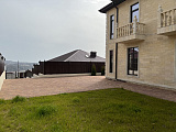 Двор вымощен брусчаткой. Обустроены зоны для отдыха с газонной травой. Высажены хвойные деревья и кустарники. Периметр территории обозначен забором, который надежно скрывает жизнь собственников от посторонних глаз, но при этом не мешает любоваться прекрасными видами.