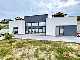 Главной особенностью этого просторного дома, выполненного в одноэтажном исполнении, является планировка, включающая в себя большую кухню-гостиную, четыре спальни, гардеробную и два санузла.