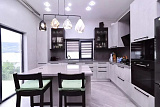 Внутри дома сделан изысканный ремонт по индивидуальному дизайн-проекту, он полностью меблирован, оснащен современной техникой и готов к проживанию.