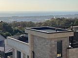Общая площадь представленного дома составляет 178 м2. Дополнительные 90 м2 – это эксплуатируемая кровля, откуда открывается просто потрясающий вид на море и территорию Сириуса, Олимпийского парка. Пространство внутри дома распланировано на 2 изолированные спальные комнаты, кухню, зал, гардеробную зону, 2 санузла. Также есть возможность выделить еще одну спальную комнату.