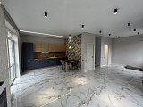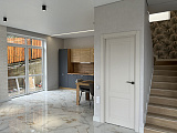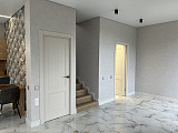 Общая площадь дома составляет 110 м2. Его внутреннее пространство поделено на 2 непроходные спальные комнаты, просторную гостиную, объединенную вместе с кухней, 2 санузла. Внутри выполнен очень стильный и современный ремонт, который точно покорит даже самых искушенных эстетов. Дизайнеры ответственно подошли к вопросу зонирования пространства и подбору мебели, элементов декора. Здесь на самом деле очень приятно находиться.