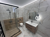 Преимущество, о котором стоит рассказать отдельно – выгодная локация. Дом находится в Адлерском районе, недалеко от Олимпийского парка. Район очень спокойный и тихий, но инфраструктура тут развита на высоком уровне. В шаговой доступности есть автобусная остановка, супермаркеты. До центра Адлера можно доехать всего за 10 минут.