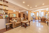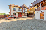 Площадь участка – 6,5 соток. Здесь, помимо основного дома, также располагается небольшой гостевой коттедж с сауной, паркинг для автомобилей, южный сад. Есть место для оборудования на территории собственного бассейна и ряда дополнительных зон отдыха. Например, здесь можно установить игровую площадку для детей или оборудовать зону барбекю.