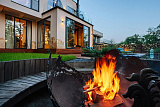 - Просторная гостиная, объединенная с кухней и оснащенная камином – идеальное место для посиделок с близкими