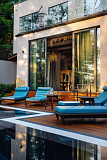 - Широкая терраса с шезлонгами для утреннего кофе, занятий йогой или просто отдыха