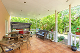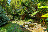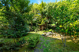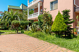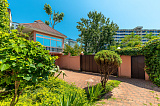 Абсолютно ровный участок, утопающий в зелени субтропического сада, равен 8 соткам. На территории особняка располагается 2-этажный гостевой дом с гаражом общей площадью 60м2, отделанный настоящей дорогой лиственницей. Установлен каскадный фонтан. Возведен высокий забор от посторонних глаз.
