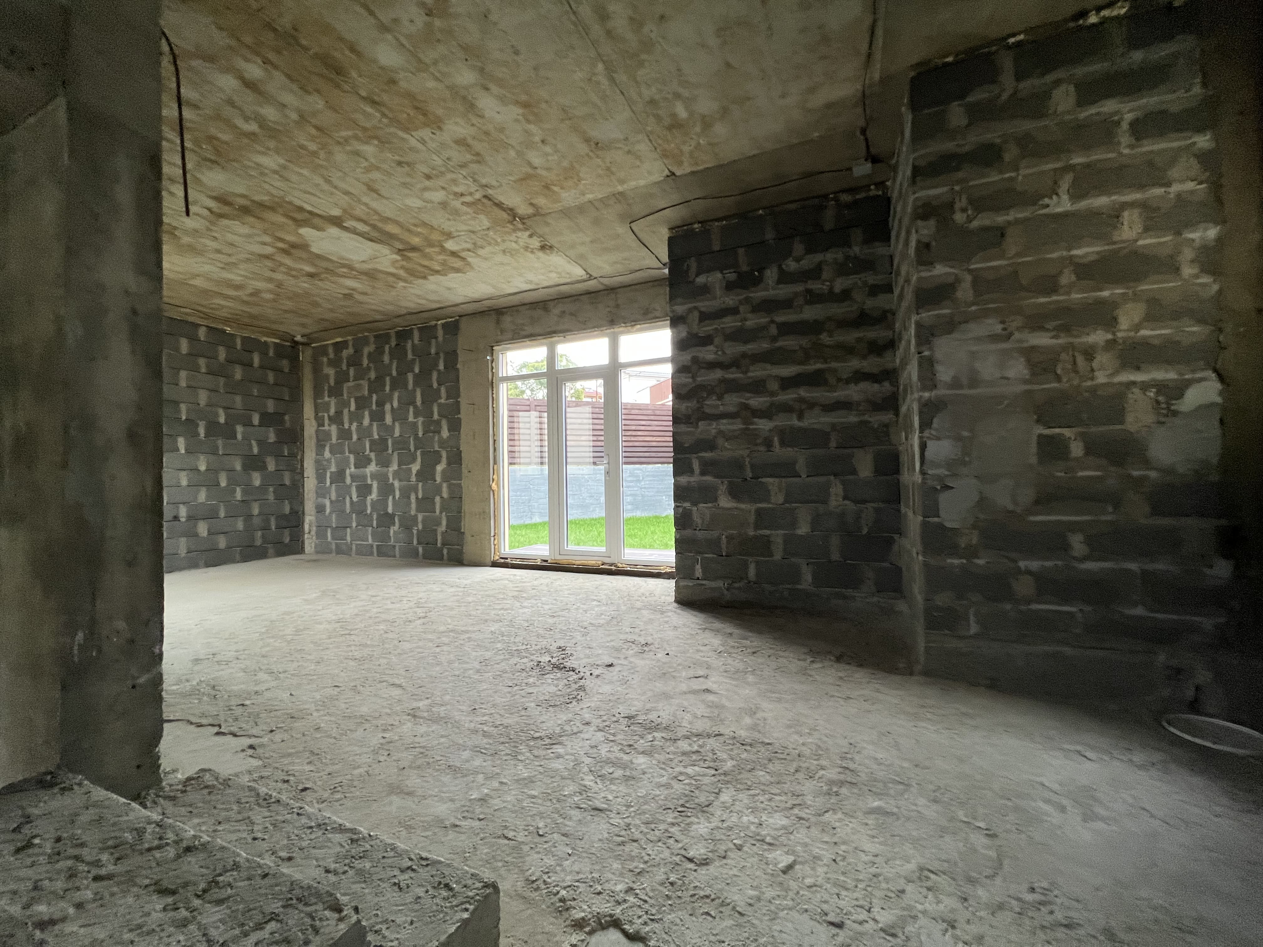Общая площадь дома – 150 м2. Сразу обратим внимание на факт отсутствия финишной отделки. Этот аспект позволяет покупателям самостоятельно продумать концепцию зонирования пространства и стилистику внутренней отделки. Элегантная классика, средиземноморские мотивы или лофт – выбор только за вами!