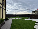 Коммуникационные и инженерные системы уже подключены. Установлены очень качественные стеклопакеты с высоким уровнем шумоизоляции и защитой от UV-лучей. Полностью завершены работы по внешней отделке дома и благоустройству прилегающей к нему территории. Кстати, на участке выполнен очень красивый ландшафтный дизайн, ненавязчиво подчеркивающий эстетику архитектурного решения.