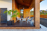 Общая площадь представленного дома составляет 110 квадратных метров. Грамотное планировочное решение делает его идеальным вариантом для жизни и отдыха семей, которым на самом деле важна свобода своего пространства. Внутри выделено 3 изолированных спальных комнаты, просторная гостиная, объединенная с кухонной зоной, два санузла, один из которых находится в хозяйской спальне. Отдельный плюс – высокие потолки (3,7 метра).