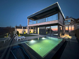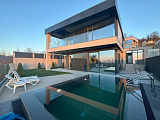 В продаже новый современный дом в коттеджное поселке с бассейном и потрясающими видами на море и город. Дом с вентилируемым фасадом из стекла. Витражное остекление. Свободная планировка, что позволит сделать так, как нужно именно Вам. Каждый дом оборудован инфинити бассейном с подогревом и ландшафтным озеленением с автополивом. В каждом доме гараж на 2 машины. Из каждого дома открывается панорамный вид на море и город. Закрытая территория с видеонаблюдением и охраной. Возможна рассрочка! 50%+ 6 месяцев равными долями. Так же возможен Торг. Онлайн показ.