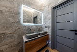 Распланирован на 3 комнаты, кухню, гостиную, эксплуатируемую кровлю с зоной отдыха и три санузла.
