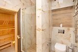В доме несколько спален, просторная кухня-гостиная с высоким потолком, кабинет, спортивный зал, комната для отдыха.
