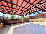 Участок грамотно зонирован и включает несколько функциональных зон: крытую парковку, рассчитанную на 3-5 машин, зону летней кухни и барбекю, бассейн, а также молодой сад с фруктовыми деревьями.