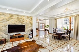 На первом этаже расположена светлая гостиная с уютной зоной отдыха, просторная прихожая, кухня исключительно из качественных материалов.