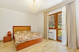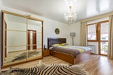 На втором этаже: хозяйская спальня с огромной гардеробной комнатой и большой ванной, так же детская комната и комната для гостей. На придомовой территории расположен бассейн с подогревом и автоматической системой фильтрации воды, зоной для отдыха и барбекю. По всему периметру дома установлено круглосуточное видеонаблюдение.