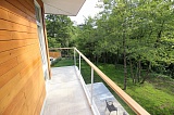 на втором этаже расположены три раздельные спальные комнаты с открытыми балконами, видом во двор, большая гардеробная, ванная комната.Витражное остекление дома делает его очень светлым и уютным.