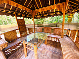 В уединённом и тихом уголке города, на участке шесть соток и скрытом от посторонних глаз, граничащим с зелёным массивом Нац.Парка с лесным ручьём и имеющим свой прямой в него выход построен Сруб.