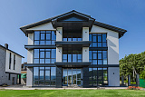 Уютный участок с удобным подъездом располагается в одном из самых привлекательных и спокойных уголков Сочи. Современный вентилируемый фасад подчеркивает архитектурную эстетику и обеспечивает долговечность здания, а большие панорамные окна Alutech впускают внутрь потоки естественного света, открывая живописные виды на величественные горы.