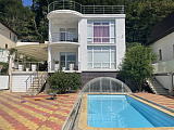 Расположенный в центральном районе Сочи данный дом имеет множество ключевых плюсов. Тихое не проездное место, сверху граничащее с Национальным Парком. Отличная асфальтированная дорога, ведущая практически до самого дома. Рядом присутствуют магазины, остановка общественного транспорта. На участке семь соток расположен сам дом, гараж, баня, бассейн с противотоком, а так же взрослый плодовый сад. Дом полностью с ремонтом, меблирован, с отличной грамотно продуманной планировкой, включающая в себя четыре спальные комнаты, просторную эксплуатируемую кровлю. Из панорамных окон дома на каждом этаже открывается завораживающий вид на море.