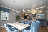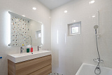 Основной дом площадью двести три квадратных метра, оснащен всей необходимой мебелью и техникой, присутствует три спальные комнаты, кабинет и просторная кухня-гостиная. Во дворе дома присутствует бассейн, а также тенистая, просторная летняя кухня с замечательными видами на горы.