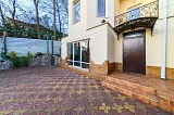 Площадь участка – 3,5 сотки. Возможно увеличение до 5 соток. Большой двор, рассчитанный на 5 автомобилей. Площадка перед домом вымощена тротуарной плиткой, высажены деревья и разбиты совершенно очаровательные клумбы с цветущими каннами.