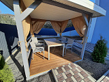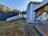 В доме на первом этаже расположились: одна гостевая спальная комната, кухня-столовая с выходом на летнюю кухню с зоной барбекю, c/у, техническое помещение. На втором этаже: 3 спальные комнаты две из который с собственным балконов видом на снежные горы, с/у, большая гардеробная комната. На придомовой территории находится зона барбекю, игровая зона, зона бассейна, парковки на 3-4 машина места а также можно посадить свой сад. Участок ровный, подъезд к дому хороший от федеральной трассы асфальтированный. До центра Адлера и Олимпийского парка 10 минут на машине.