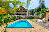 На территории имеется: крытая парковка на 2 автомобиля + еще 4 авто при желании можно припарковать на территории под открытым небом, подогреваемый бассейн 6 на 3 метра, сад, 3 кладовые, вольер для собак, санузел, а так же капитальный гостевой дом общей площадью 84 кв.м. с сауной, кухней, комнатой отдыха и санузлом.