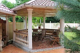 Очень красивый ландшафтный дизайн! Есть своя беседка в мавританском стиле с барбекю. Большое парковочное пространство.