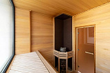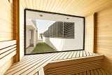 Бассейн с подогревом (6х3 метра), отдельно стоящая сауна с видом на морской простор, вместительная терраса, идеальное место для семейного отдыха и встреч с друзьями, включая зону барбекю.