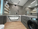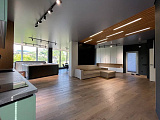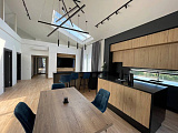 Цокольный этаж оборудован отдельным входом к сауне и домашнему кинотеатру. Это идеальное решение как для круглогодичного проживания, так и для загородной резиденции.