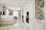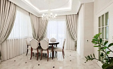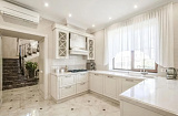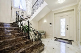 В доме выполнен качественный ремонт с использованием премиальных материалов, каждая комната обставлена мебелью, подобранной с вниманием к деталям. Планировка предусматривает 5 изолированных спален на втором этаже, просторную кухню-гостиную на первом, несколько санузлов, хозяйственные помещения, парную, котельную и вместительные гардеробные комнаты.
