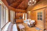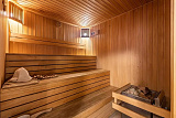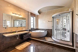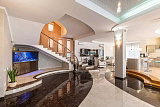 Отдельно расположена сауна с купелью и тремя душевыми, а также просторная гостиная.