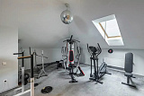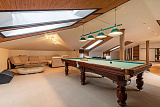 Третий этаж – это просторная зона отдыха, где размещен бильярдный стол и отдельный спортивный зал.